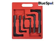 The BlueSpot Jumbo Hex Keys are manufactured from heat treated steel with a blackened oxide coating to protect against corrosion. The precise and chamfered ends fit smoothly into fastener heads to reduce wear. The long arm hex keys allow for increased reach and torque and are ideal for use in automotive environments.