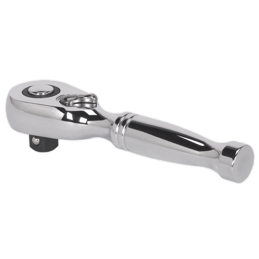 Chrome Vanadium steel ratchet wrench. Hardened, tempered and finished in deep polished high chrome. Twist-reverse and quick release. Knurled handl...