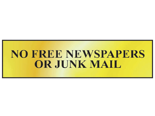 No Free Newspapers Or Junk Mail - Polished Brass Effect 200 x 50mm