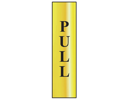Scan polished brass effect self-adhesive sign with black text/graphic. Printed using UV resistant inks. Size: 200 x 50mm. Message: 'Pull' (horizon...