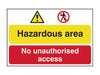 Hazardous Area / No Unauthorized Access - PVC Sign 600 x 400mm