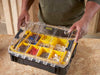 The STANLEY® FatMax® PRO-STACK™ Organiser features 10 removable cups and a strong, transparent, polycarbonate lid which provides clear and un-obstructed visibility of contents. Ideal for storing small parts, components and accessories. Complete with anti-rust metal latches for durability and a carry handle for easy transportation.