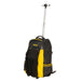 Backpack on wheels with telescopic handle, rigid waterproof base and padded straps. Removable organiser, multiple pockets and padded device compartment. 600D fabric.