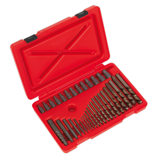 Comprehensive 35-piece master extractor set, features spiral flute extractors for use with bolts/fasteners requiring less torque, multi-spline ext...