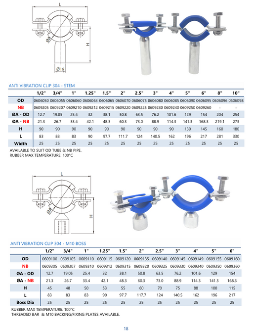 - Anti Vibration Clip M10 Boss - NB Pipe