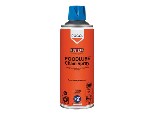 ROCOL FOODLUBE® Chain Spray is a food grade aerosolised lubricant for chains, conveyors, pulleys and rollers in the food and other clean industries...